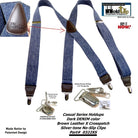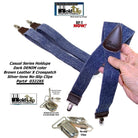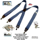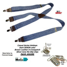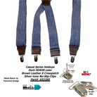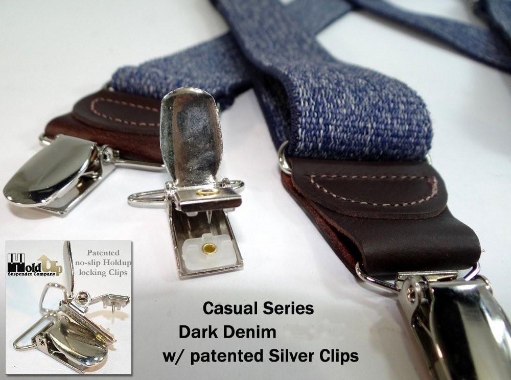 Casual Series Dark blue denim Holdup brand men's clip-on suspenders with patented silver -ton no-slip clips are made in the USA better by design!