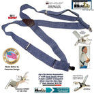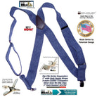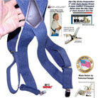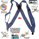 HoldUp Brand Dark Denim Trucker Style Hip-clip Suspenders with Patented Silver tone Jumbo No-slip Clips