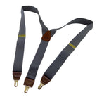 - Dark colorfast Gray strap Holdup Y-back style suspendersĀ with Patented No-slipĀ® suspender clips in gold tone finish
