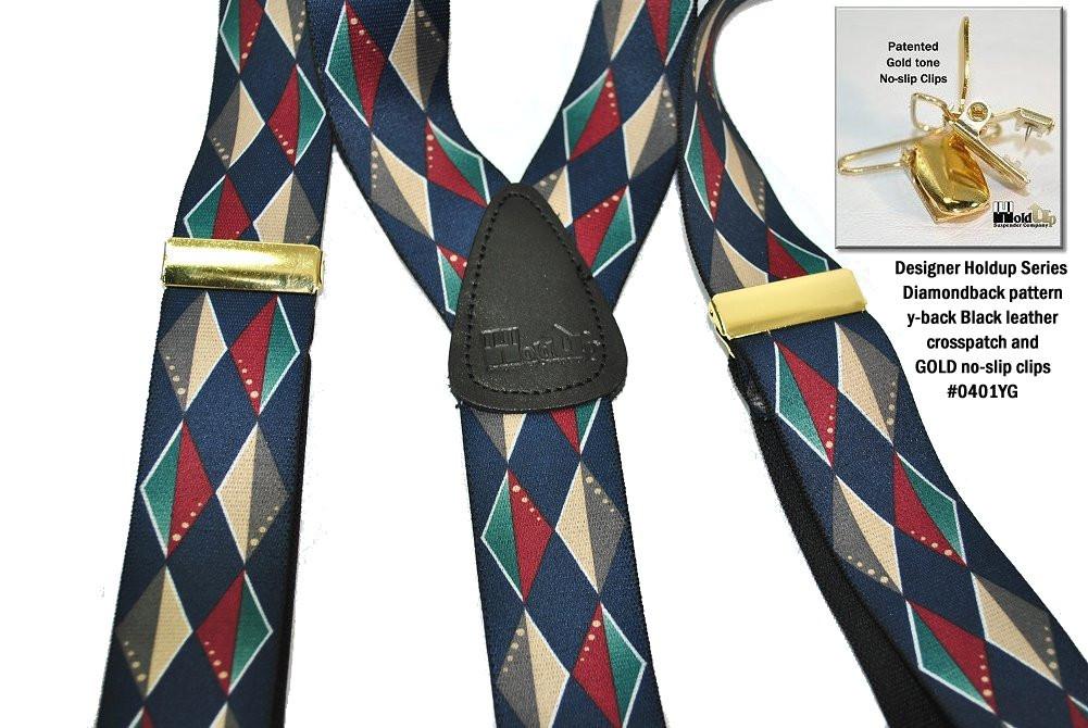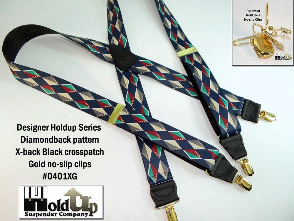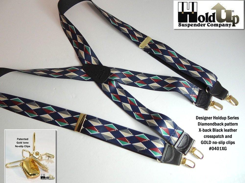 - The diamondback pattern is part of Holdup® Suspenders Designer series clip-on patented suspenders