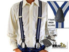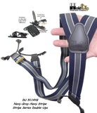 - Navy Blue and Gray stripes and Double-Up Dual No-slip® clip styling for that button-on suspender look at work, play or school