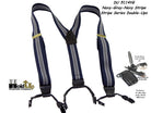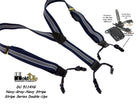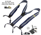 Hold-Ups Navy Blue with Gray and White Stripe Double-up Suspenders with Black No-slip Clips