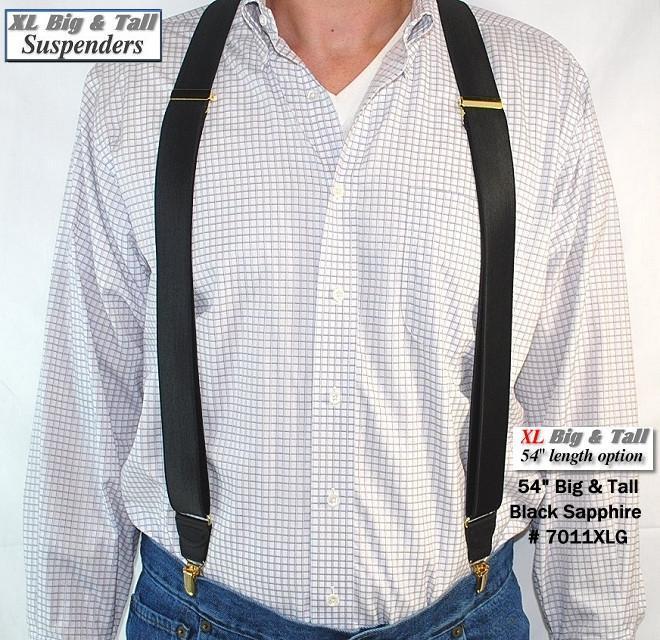 - Part of the 1 1/2" wide XL Corporate Series Holdup Suspender line with Black Sapphire satin finished hand washable color straps made to fir men over 6 feet tall