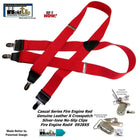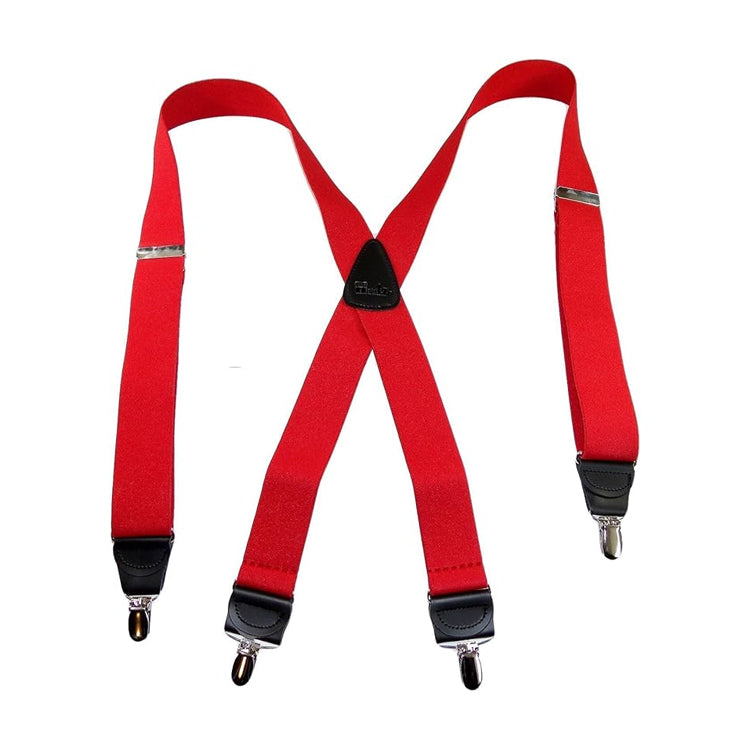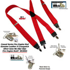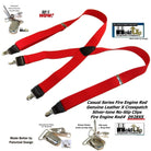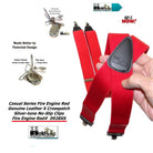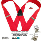 Men's Fired Engine Red clip-on X-back Holdup suspenders with patented silver no-slip clips.