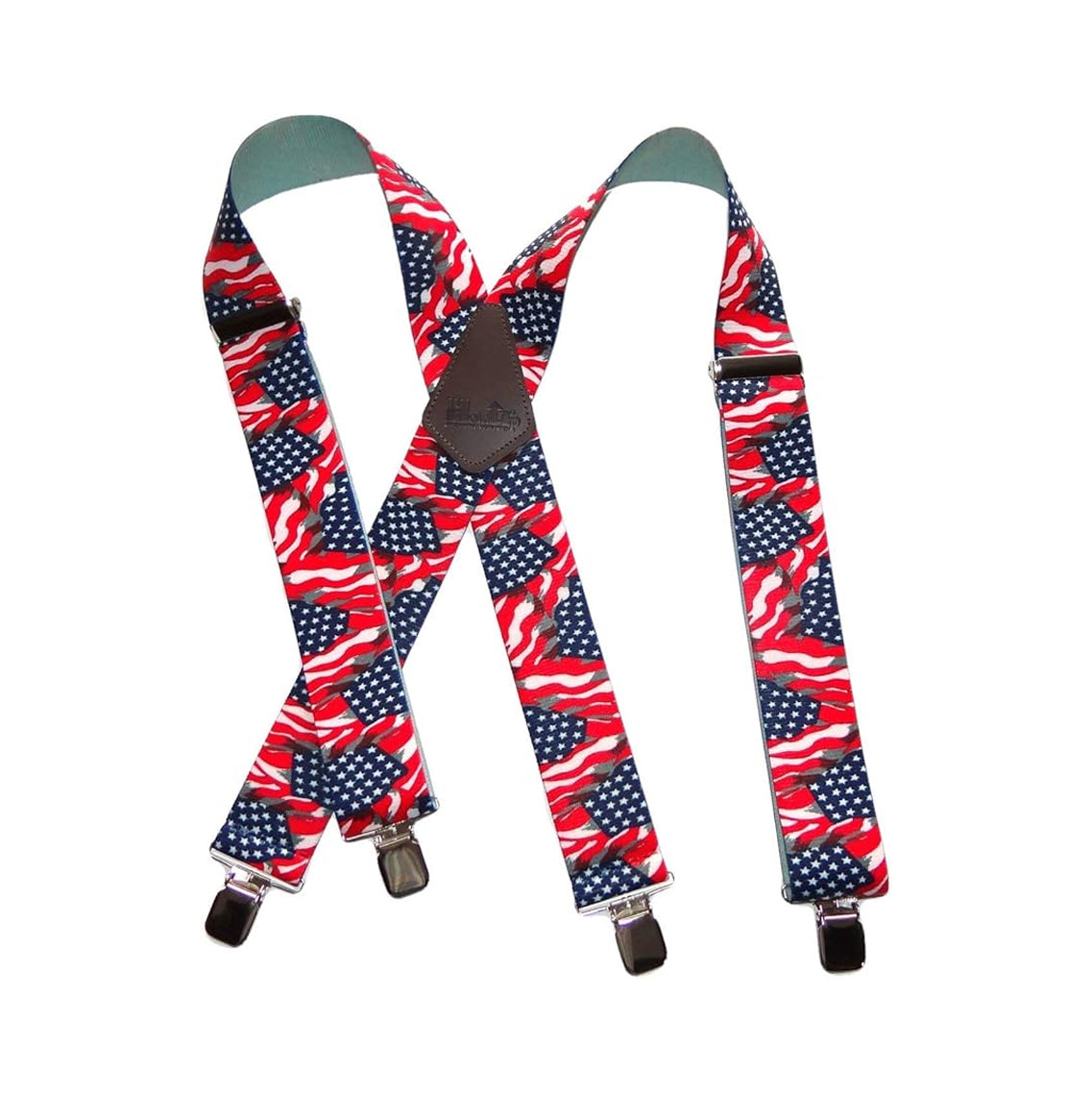 - Heavy-duty work HoldUp suspender with nice USA flag pattern in aĀ 2 inch width with silver metal strap length adjuster so the fit men to 6 feet tall.