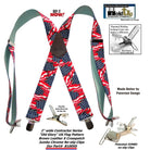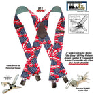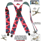 USA Old Glory Flag Pattern X-Back Holdup Suspenders with USA Patented No-slip Silver Clips