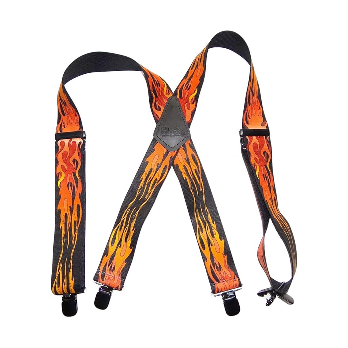 Hold-Ups Flame Pattern 2" wide Biker Suspenders with USA Patented Jumbo no-slip Clips