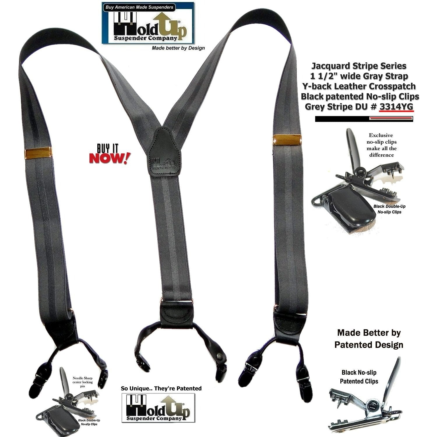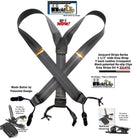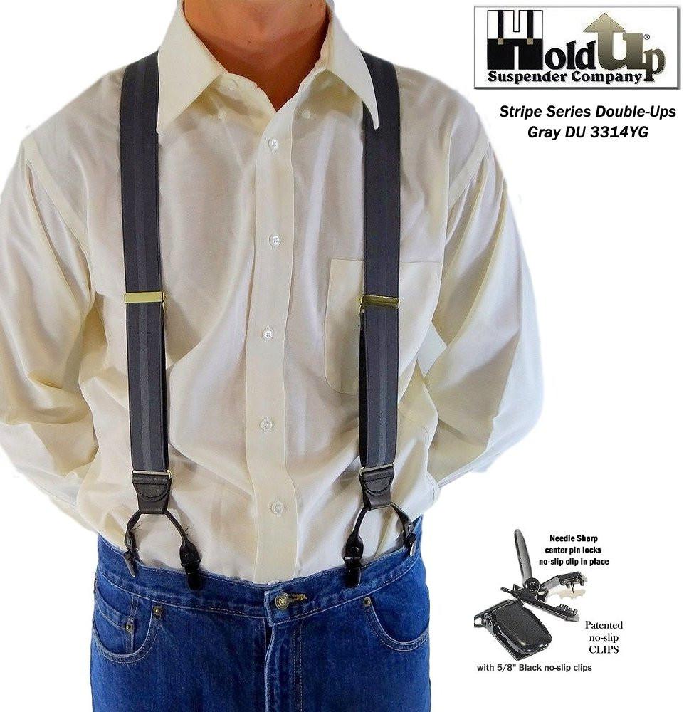 American Made Holdup Gray Stripe Jacquard Double-ups style Suspenders with patented No-slip center pin type clips for the well dressed man