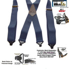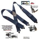 Navy Blue wide heavy duty work X-back suspenders made better by patented design in the USA by Holdup Suspender Company