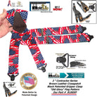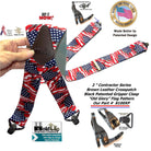 - USA Flag pattern 2" wide work suspenders made with durable colorfast dense elastic straps