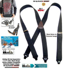 Holdup Brand Black Ski-Up X-back Suspenders with USA Patented Gripper Clasps