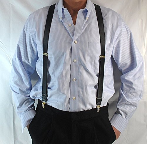 - Perfect satin finished dense smooth weave all black Y-back suspender braces for formal or business wear with USA patented nickel no-slip clips
