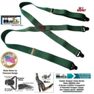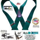 - 1 1/2" wide USA made deep green color suspender straps in a 48" adjustable length so they fir men up to 6 feet tall