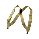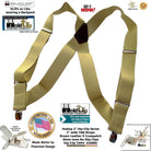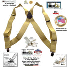 Holdup Tan wide Trucker style side clip-on work suspenders with X-back crosspatch and they're made in the USA