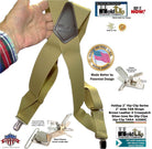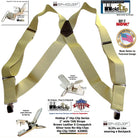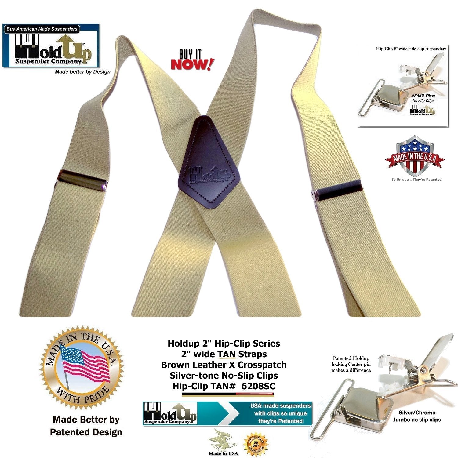 Holdup Brand Light TAN Trucker Style 2" Wide Hip-Clip Suspenders with jumbo Patented No-slip Clips