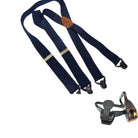 Holdup Black 1 1/2" wide XL SKI-Ups with USA patented gripper clasps and brown leather X-back crosspatch embossed with Holdup trademarked logo.