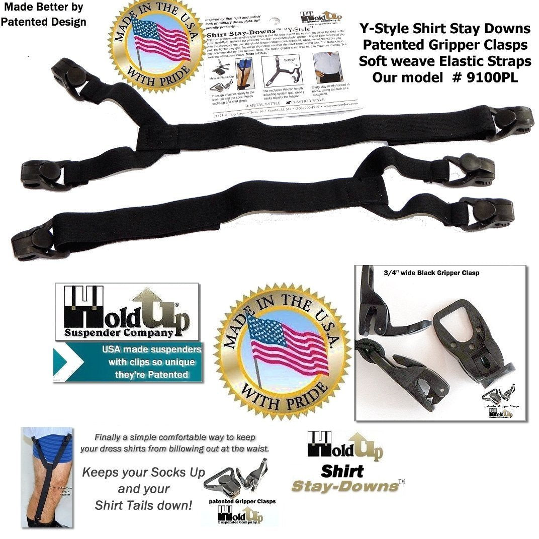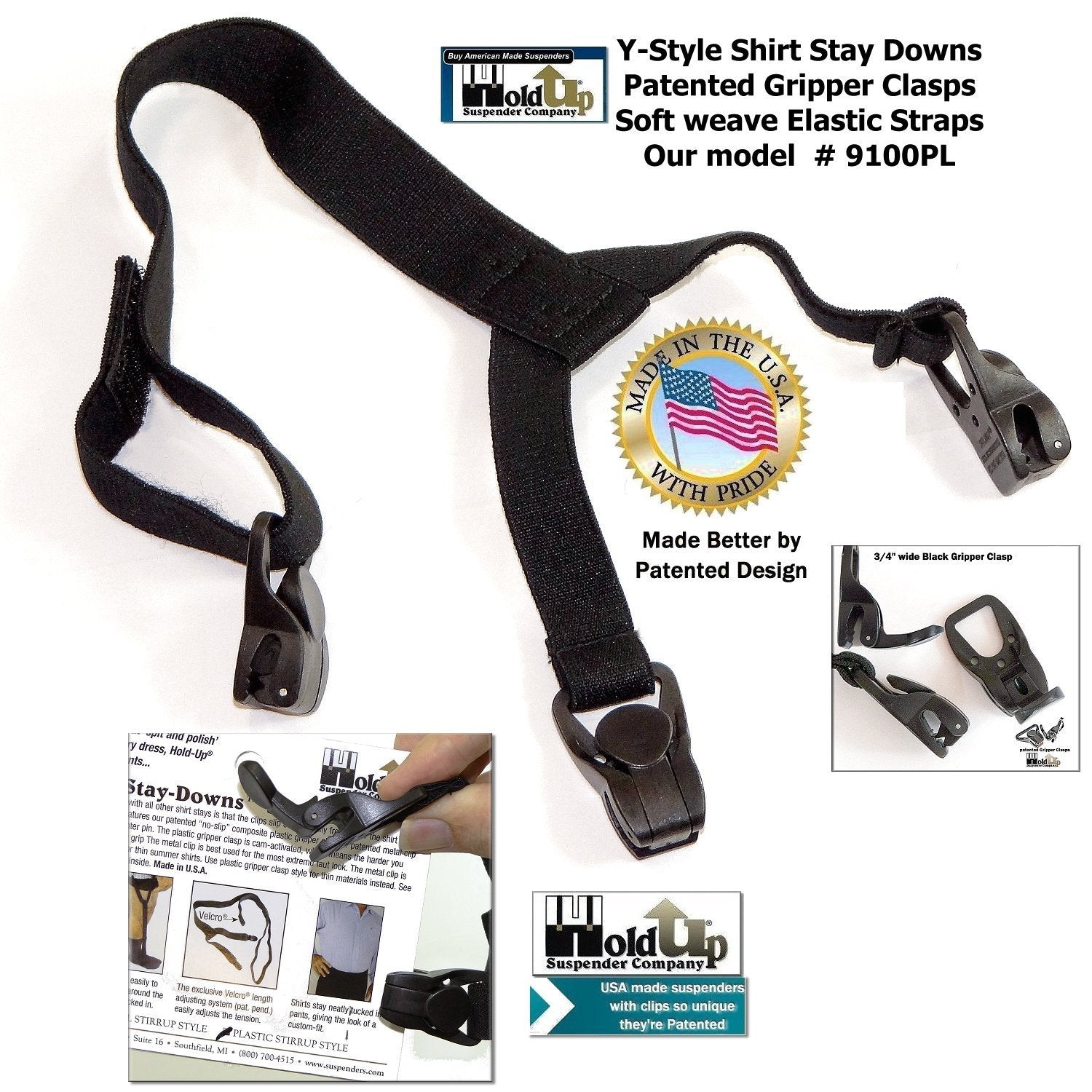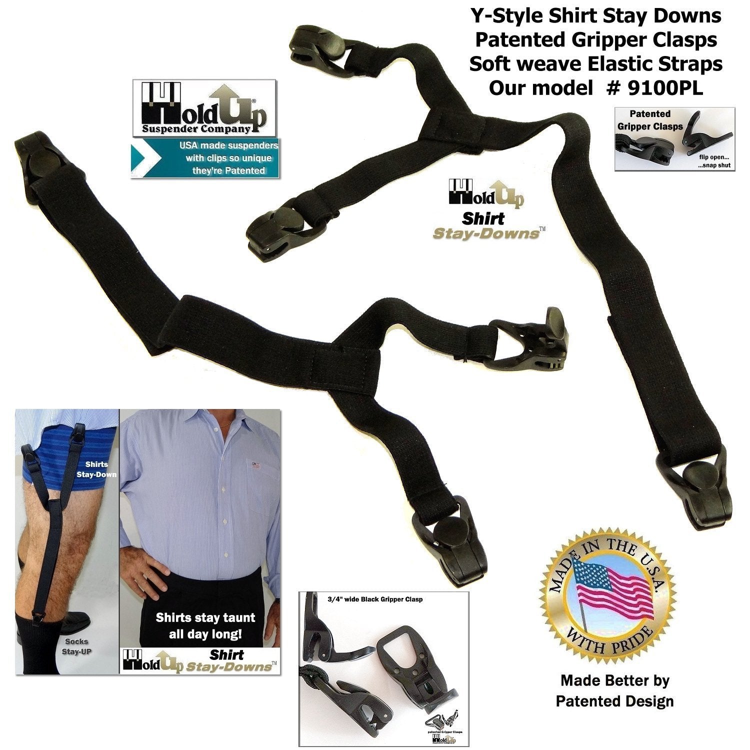 HoldUp Dress Shirt Stay Downs Y-style Shirt Tail garter straps with Patented Plastic Gripper Clasps