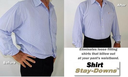 - Eliminates uniform and dress shirts from bunching up and billowing at your waistline