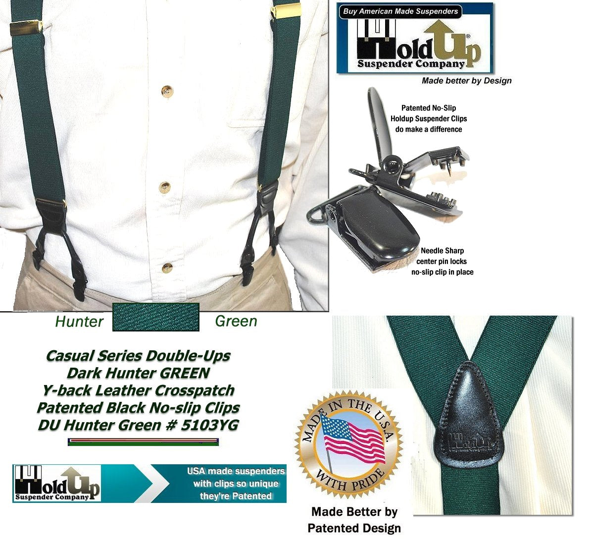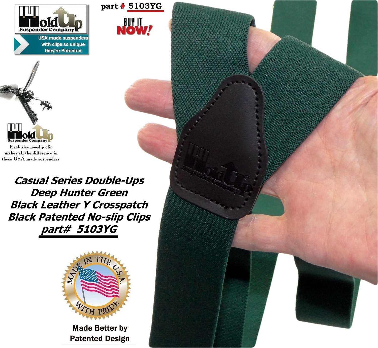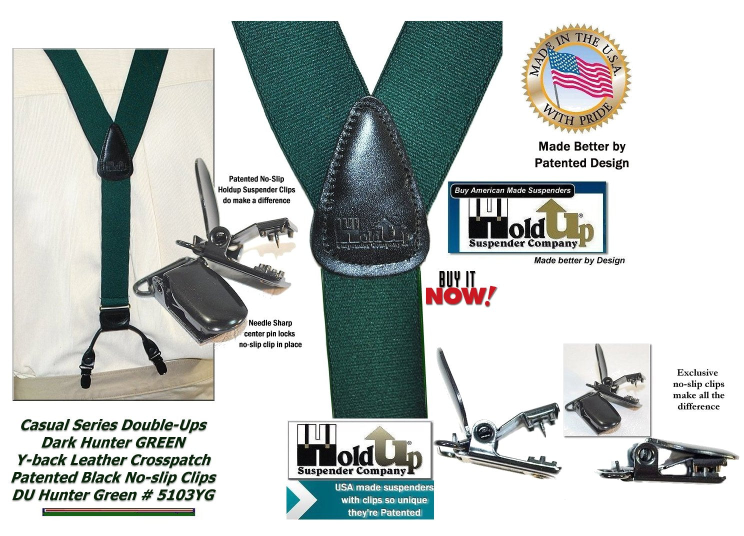 - Casual Series Dual Clip Double-Up dressy Hunter Green Holdup Saint Patricks Day Party Suspenders with black patented no-slip clips