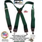 Holdup Brand Dark Hunter Green Men's Clip-On Suspenders with X-Back Style and and Silver/Chrome Clips