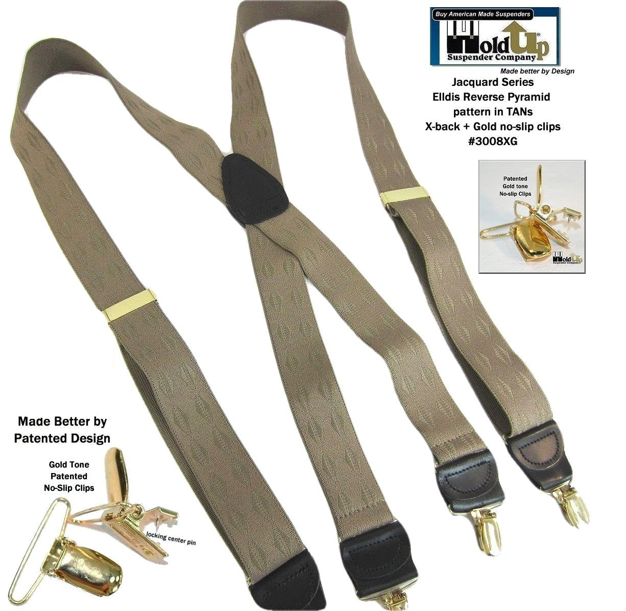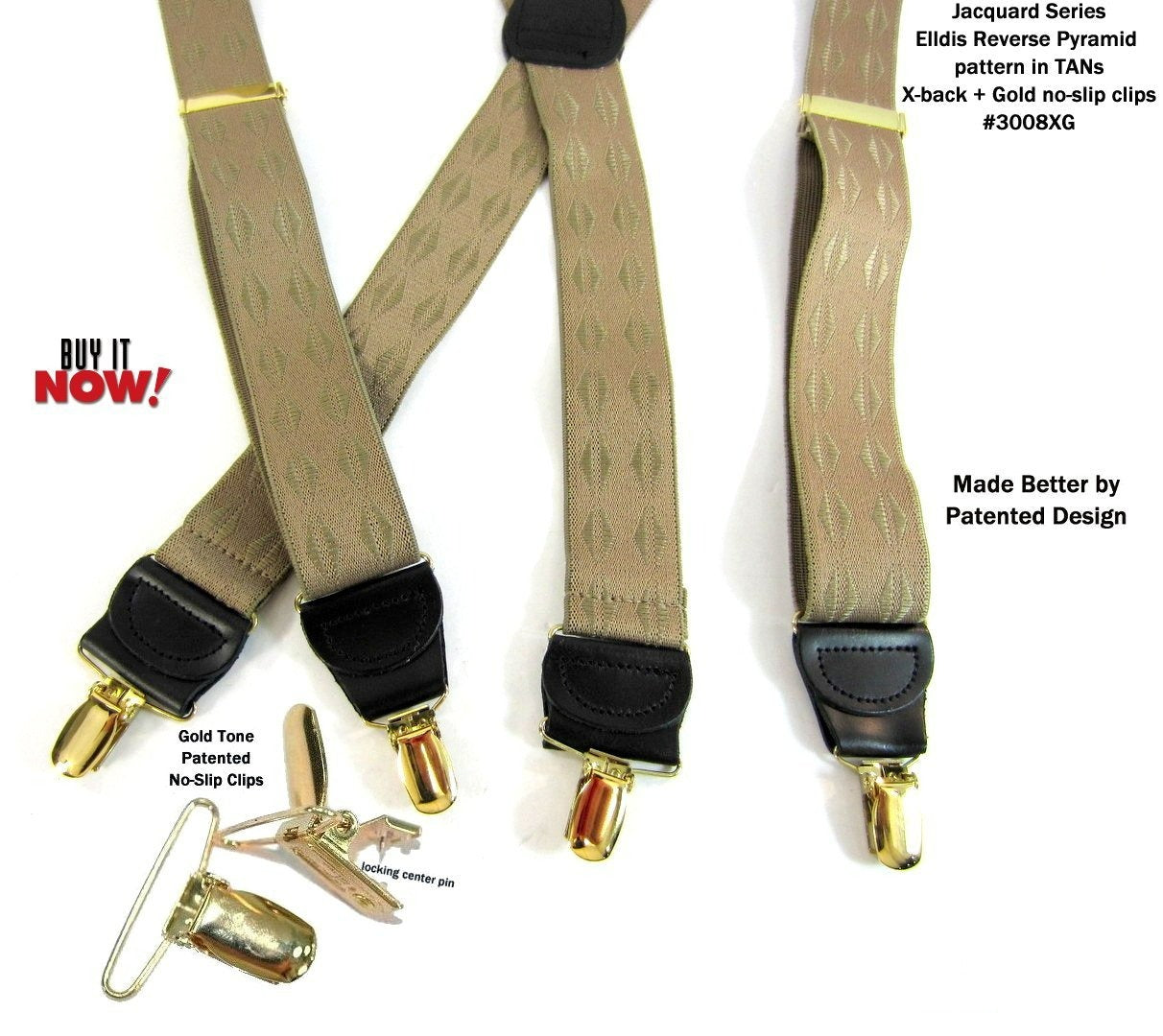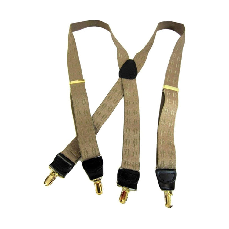 Jacquard Series Elddis diamond Pattern Tan X-back Holdup Suspenders with USA Patented No-slip Gold-tone Clips