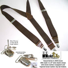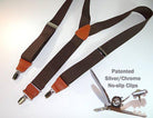 Hold-Ups dark Java Brown Suspenders Y-back style w/ Patented Silver No-slip Clips