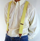 - Nice pale yellow clip-on casual wear suspenders with Brown Leather tapered clip tab holders