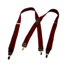 - MERLOT (Burgundy wine color) casual single-clip suspenders with X-back and nickel/silver tone patented NO-SLIP® clips with locking center pin