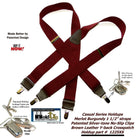 Casual Series X-back Merlot Burgundy Holdup Suspenders with USA patented silver-tone no-slip center pin type clips.