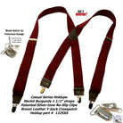 HoldUp Brand Merlot Burgundy 1 1/2" wide suspenders in X-back style with USA Patented No-slip Silver-tone clips
