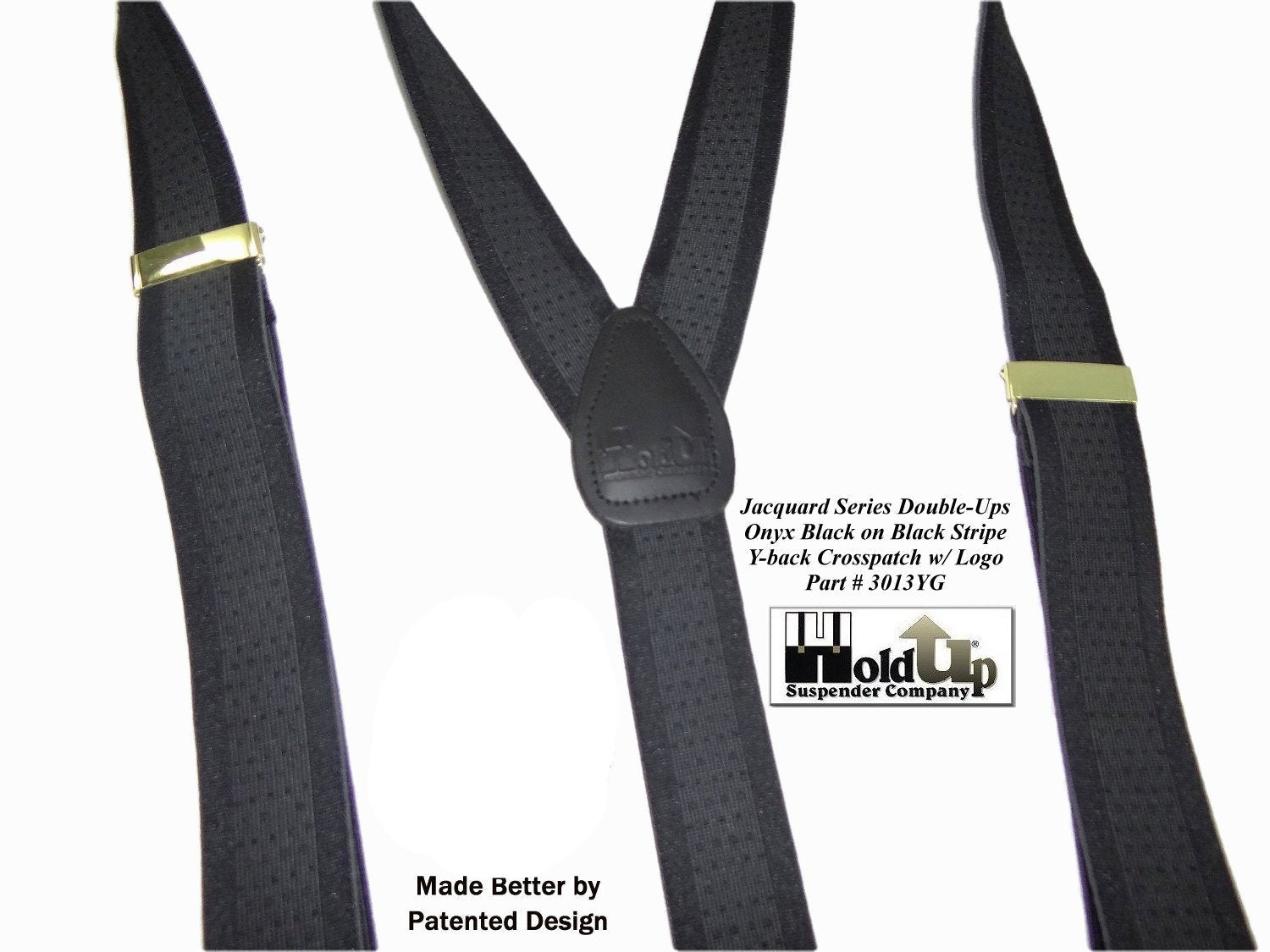 Hold-Ups Onyx Black-on-Black jacquard weave Dual Clip Y-back Suspenders with USA patented no-slip center Pin clips
