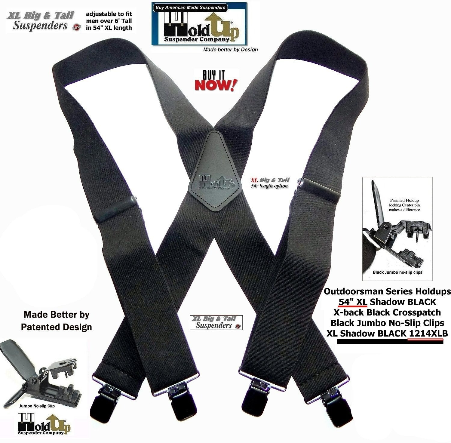 - Black Jumbo no-slip USA Patented Holdup clips made to last and the needle sharp center pin design makes these the best black Extra Long HD work suspender money can buy!