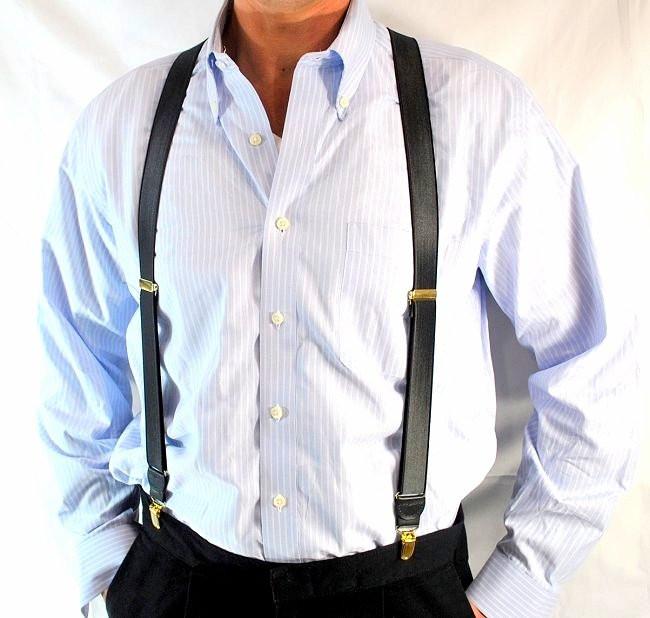 - Patented no-slip suspender clips in gold finish with locking center pin