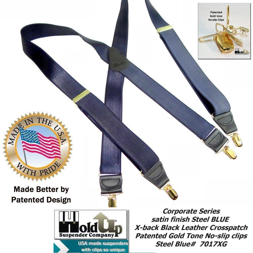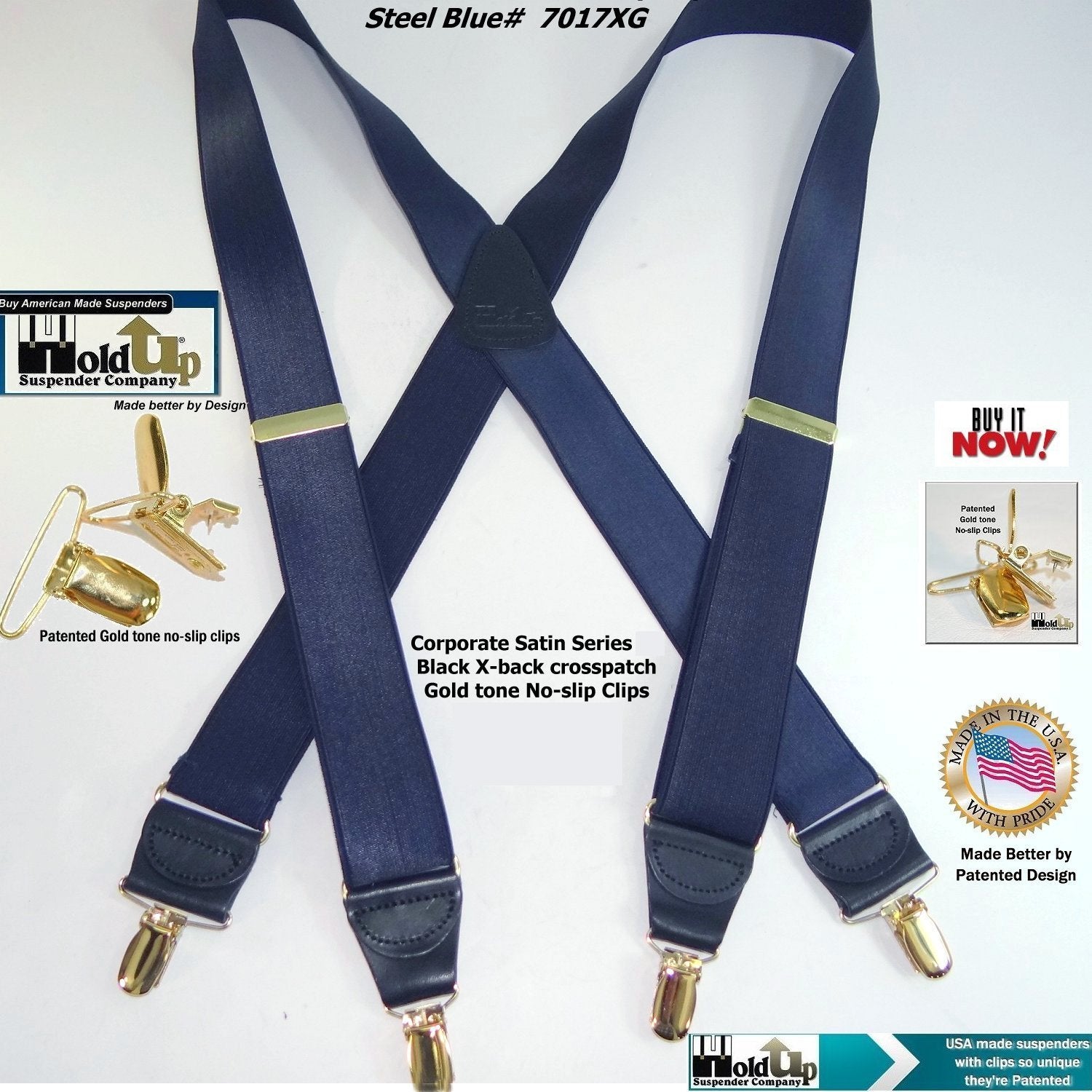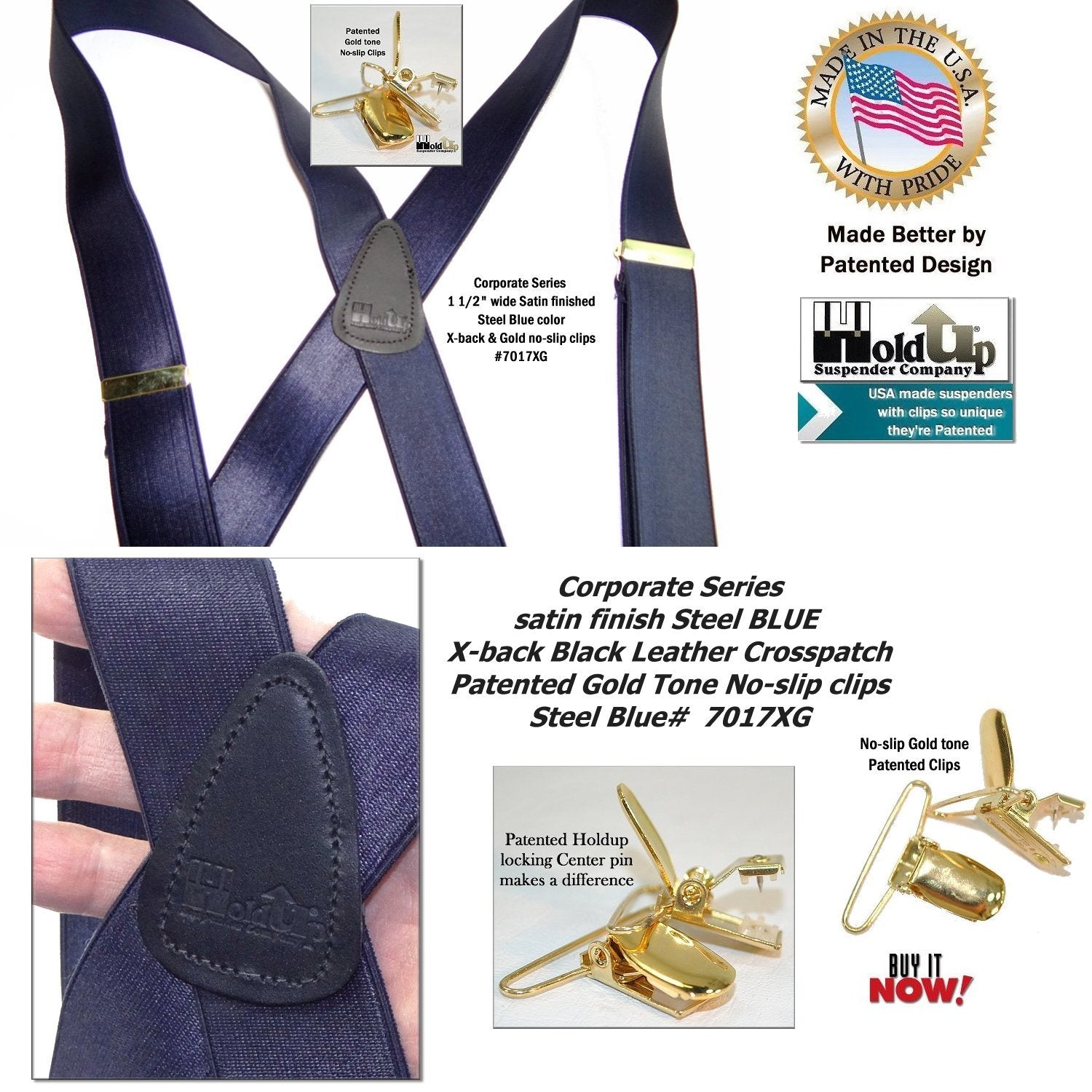 - "Steel Blue" Holdup Corporate Series suspenders with satin formal finish are hand washable and the thick smooth weave straps last for years