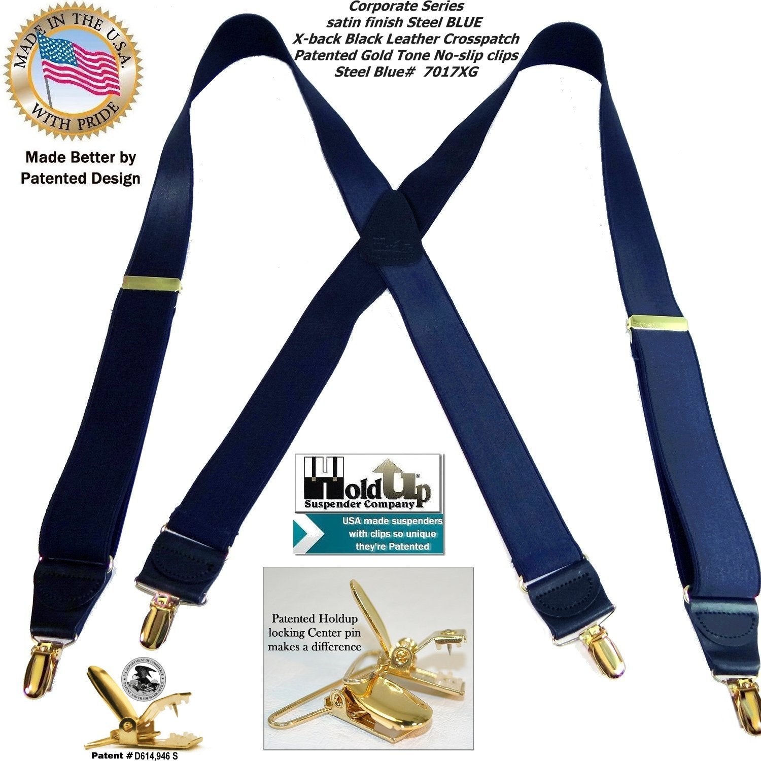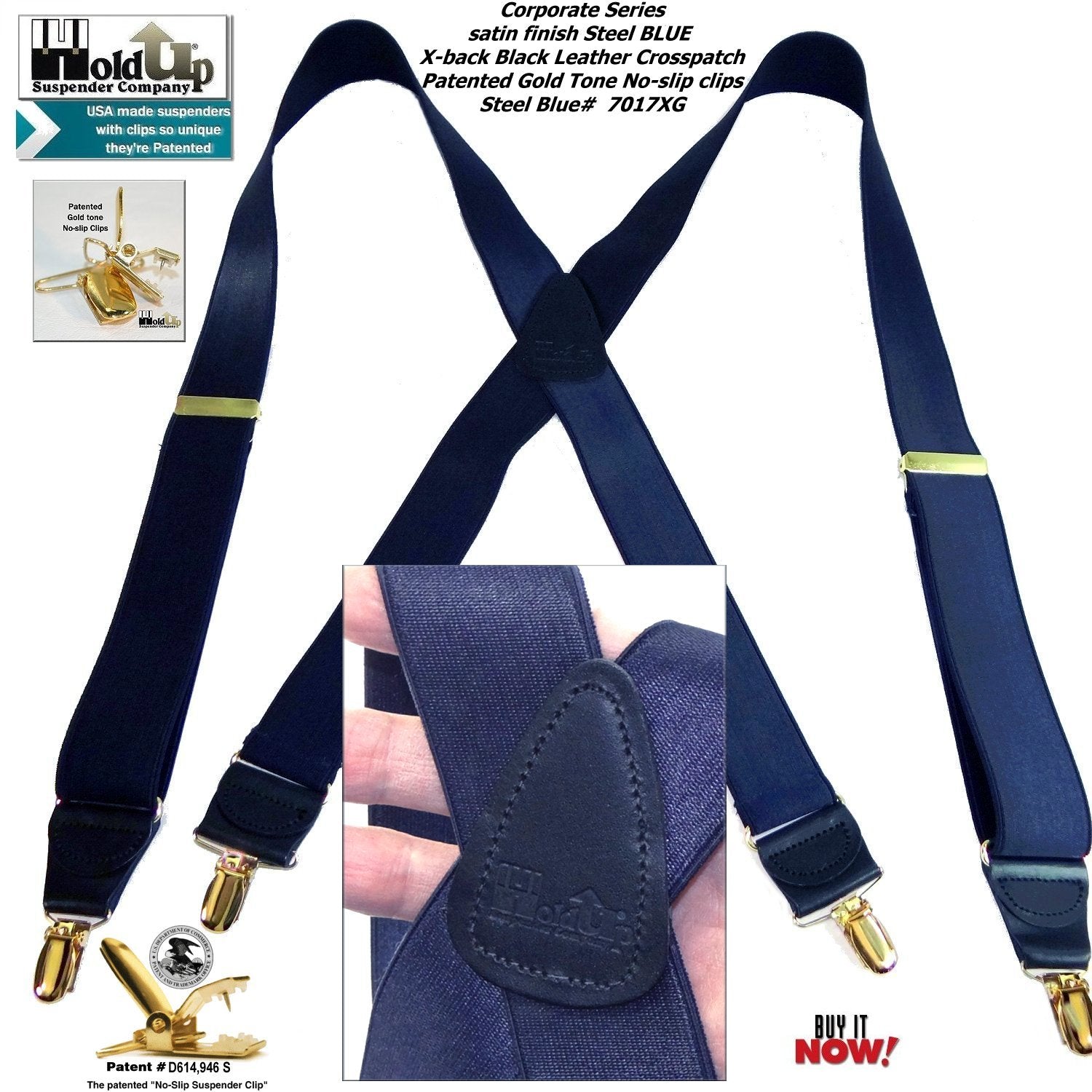 - Part of the Corporate series HoldUp Suspender line in "Steel Blue" color and these have hand washable water resistant dense weave straps.