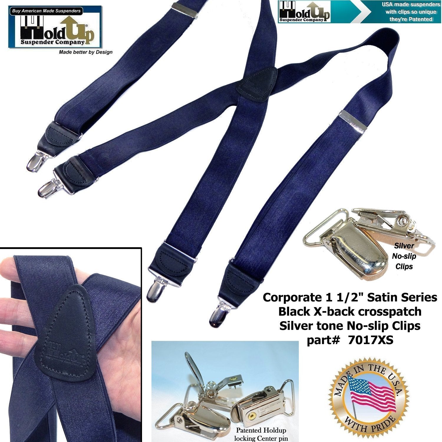 Holdup Suspender Company Steel Blue Satin Finish Corporate Series Suspenders X-back with Patented No-slip Silver Clips