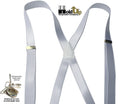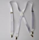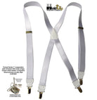 Hold-Ups X-back 1" wide Formal Satin Finish White Suspenders with USA Patented No-slip Silver Clips