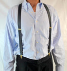 - Perfect XL big and tall man's black suspenders for formal events or business office wear with USA patented gold No-slip center pin type clips