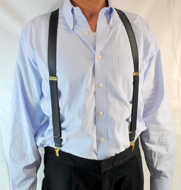 - Narrow 1" wide black clip-on X-back Hold-upĀ® formal suspenders for Big & Tall men.