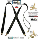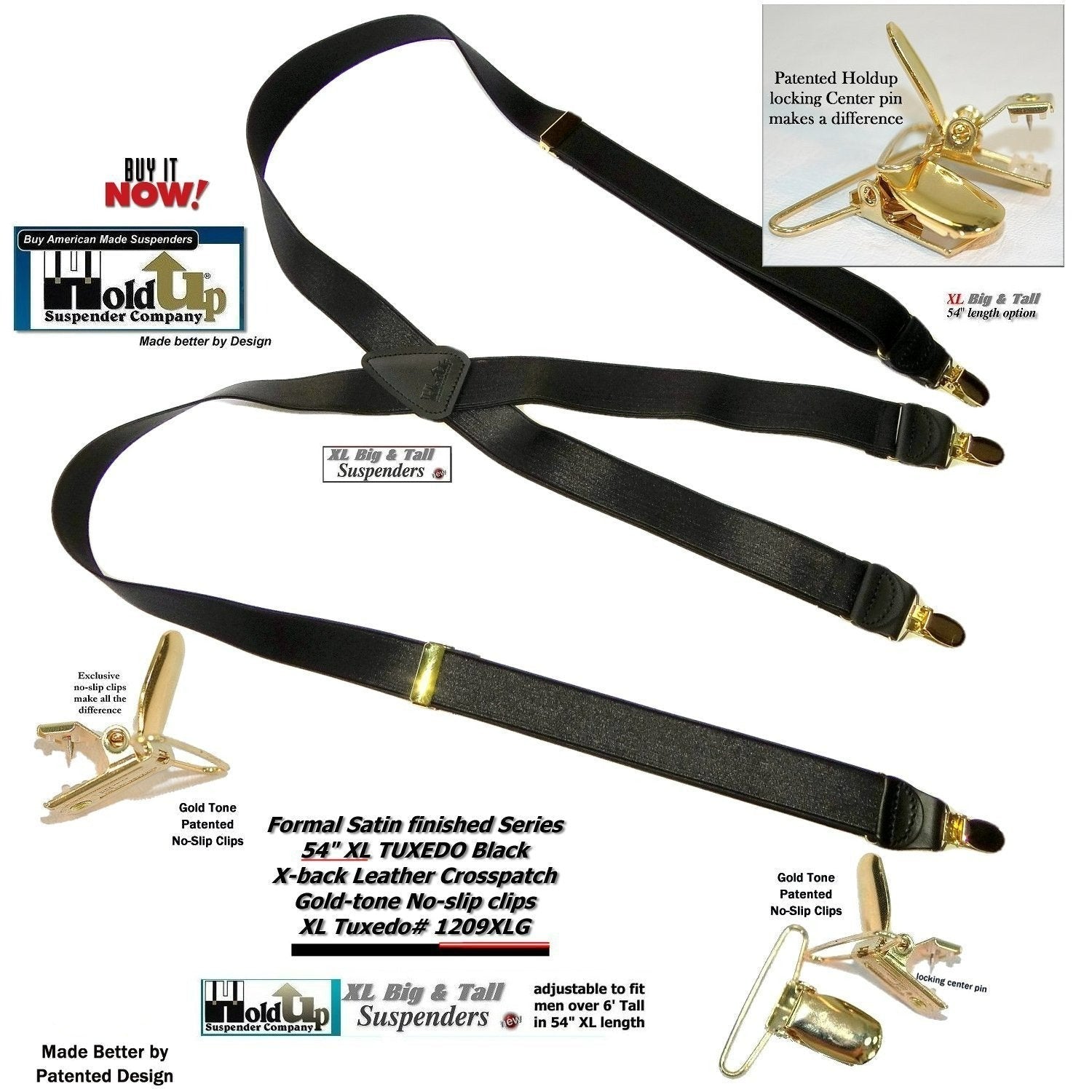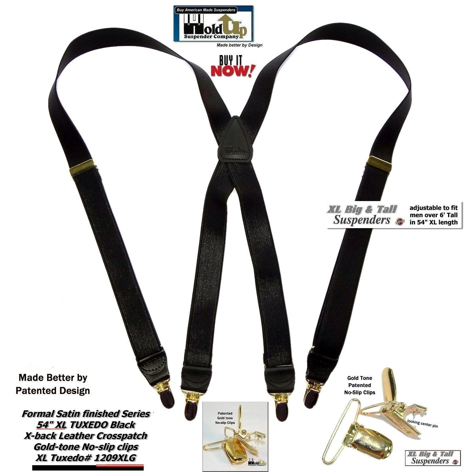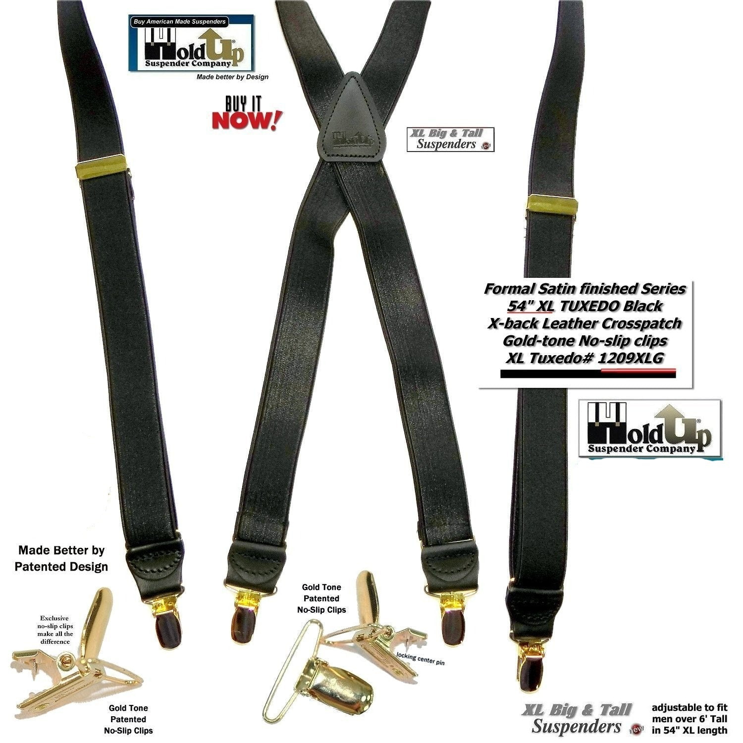 Hold-Ups XL Tuxedo Black Satin Finish 1" Wide, X-back style Suspenders with USA Patented No-slip Gold Clips