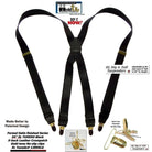 HoldUp Brand XL Tuxedo Black Suspenders with Satin Finish 1" Wide straps and Patented No-slip Gold Clips and they're made in the USA.