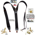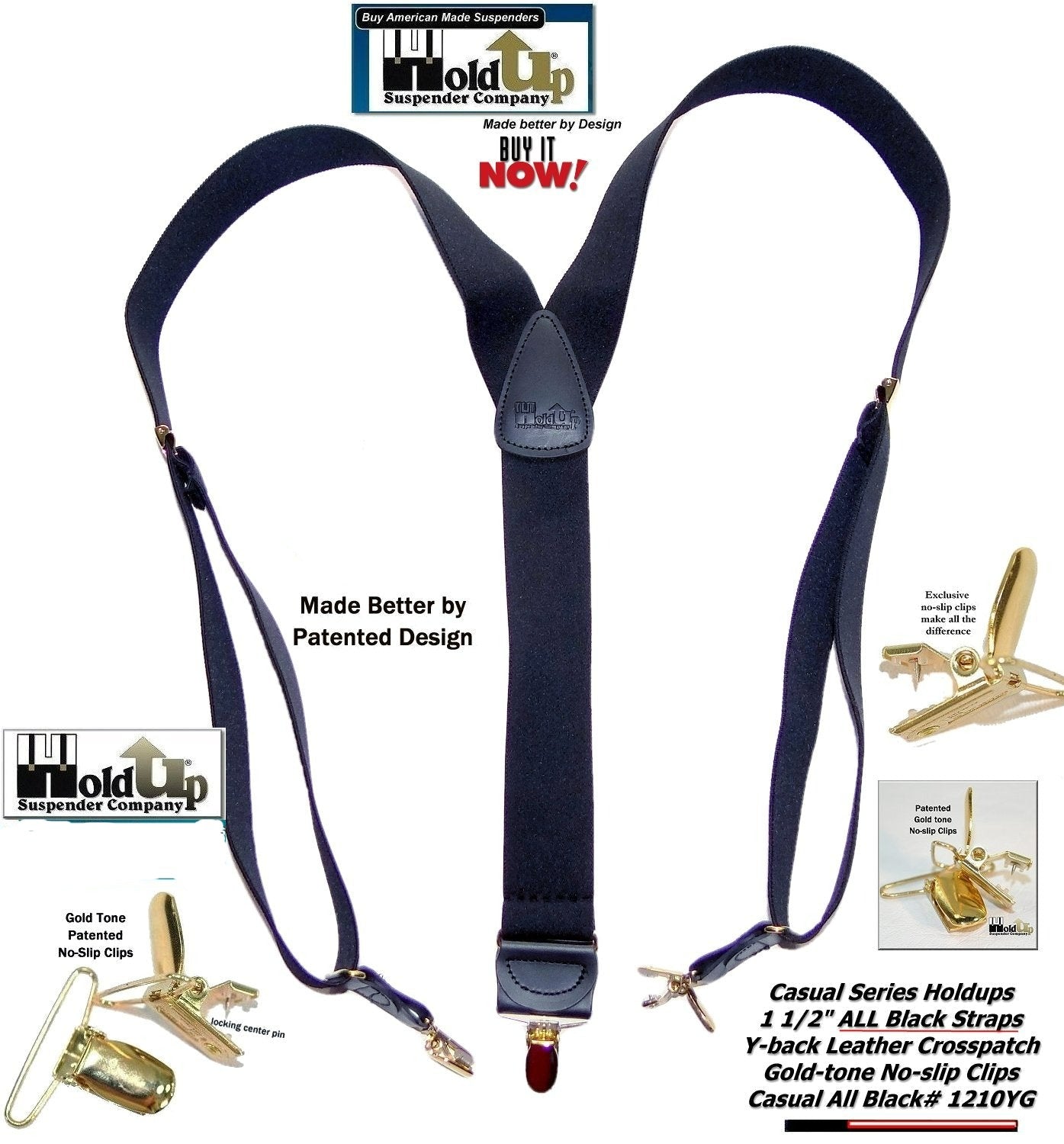 Hold-Ups Y-back All Black Casual Series Suspenders USA Patented No-Slip Gold Clips