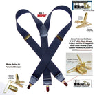 - USA Patented No-slipĀ® suspender clips in shiny gold-tone finish guaranteed not to pop off your pants as they have a needle sharp center locking pin